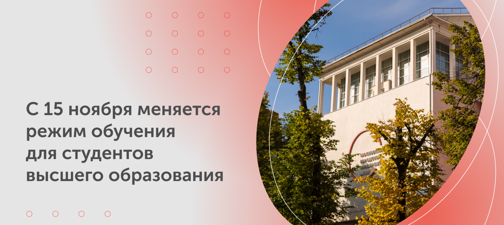 С 15 ноября 2021 года студенты, обучающиеся по программам высшего образования, допускаются к учебным занятиям на территории университета при предъявлении QR-кода, подтверждающего статус вакцинации от COVID-19, статус переболевшего или наличие действующего отрицательного результата ПЦР-теста.