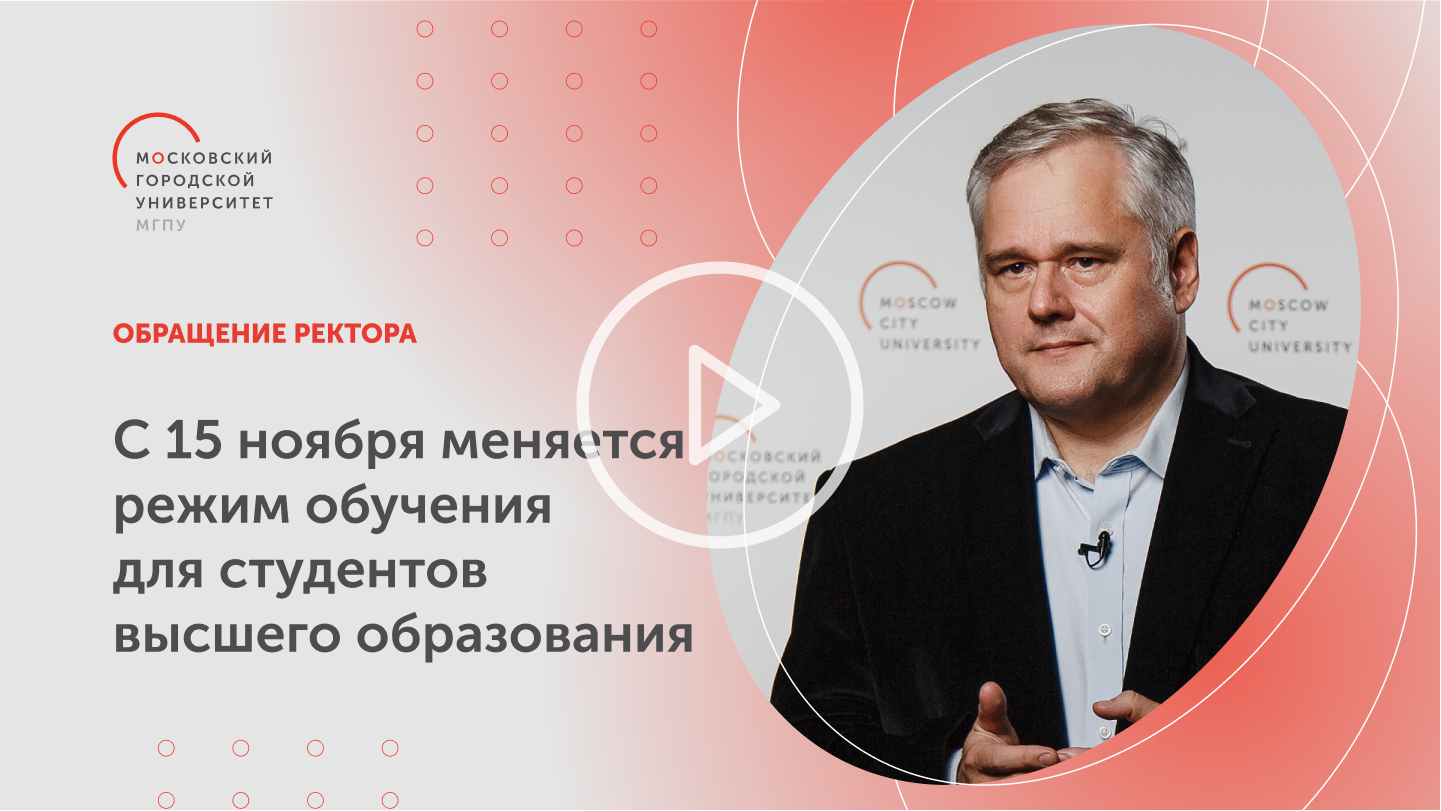 Для студентов, не прошедших вакцинацию и не имеющих медицинского отвода, занятия будут проводиться полностью в дистанционном формате. | | | | Посмотрите специальное обращение ректора МГПУ Игоря Реморенко, почему изменяется режим обучения. | | | | Как учатся разные категории студентов с 15 ноября | | | | Студенты очной формы, обучающиеся по программам высшего образования | | | | С 15 ноября лекционные занятия и элективные модули проводятся в дистанционном формате. Практические и семинарские занятия, а также промежуточная аттестация проводятся с присутствием учащихся на территории университета и дублированием занятий в дистанционном формате. | | | | | Старше 18 лет при наличии QR-кода | | Для прохода в здания университета и допуска к занятиям студентам старше 18 лет необходимо на входе предъявить QR-код, подтверждающий статус вакцинации, статус переболевшего или наличие действующего отрицательного результата ПЦР-теста. | | | | Старше 18 лет при наличии медотвода | Для студентов старше 18 лет, имеющих медицинский отвод, в университете будет организовано бесплатное экспресс-тестирование. Чтобы воспользоваться бесплатным экспресс-тестированием в университете, до 10 ноября отправьте справку о медицинском отводе, выданную медицинской организацией системы здравоохранения города Москвы или медицинской организацией по месту жительства, на электронную почту отдела охраны труда университета ot@mgpu.ru с указанием своего института. После подтверждения справки Департаментом здравоохранения города Москвы, студент сможет проходить экспресс-тестирование. | | | | Старше 18 лет без QR-кода и без медотвода | | Студенты старше 18 лет, отказавшиеся от вакцинации и не имеющие медицинского отвода, обучаются исключительно в дистанционном формате. | | | | Младше 18 лет | Для студентов младше 18 лет доступ в здания университета осуществляется: - либо при наличии отрицательного результата ПЦР-исследования, полученного не позднее, чем за трое суток до входа в университет;