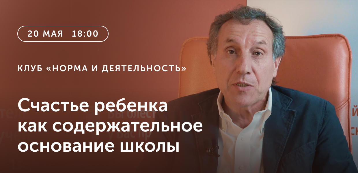 Приглашаем на заседание экспертного клуба «Норма и деятельность» 20 мая. Тема встречи: «Счастье ребенка как содержательное основание школы».В заседании примут участие эксперты клуба – педагоги и психологи, а также все, кто болеет за счастливое детство и качественное образование подрастающего поколения.