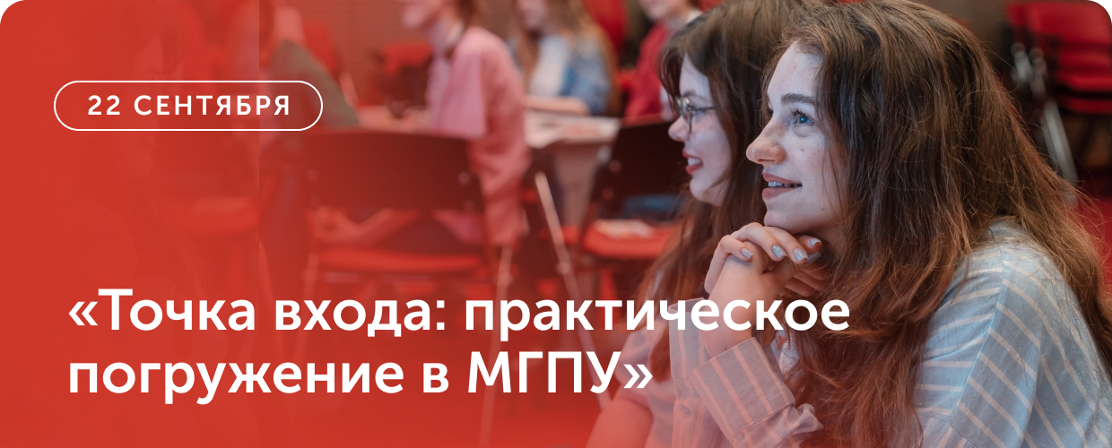Приглашаем всех, кто начинает и продолжает преподавательскую деятельность в университете, принять участие в практикуме «Точка входа: практическое погружение в МГПУ». | | | | | Пройдете диагностику навыков преподавания и получите обратную связь от экспертов | | | | Определите свои зоны роста и научитесь делать акцент на сильных сторонах | | | | Поделитесь, чего вам не хватает для комфортного старта в университете | | | | | | Дарья Вьюнова | | Руководитель Центра дидактики профессионального образования МГПУ | | | | Михаил Кларин | | Научный руководитель Центра, доктор педагогических наук, профессор | | | | Екатерина Клычникова | | Начальник управления персоналом МГПУ | | | | | 22 сентября, 10:00-18:00 2-й Сельскохозяйственный пр., 4, киноконцертный зал на 3-м этаже | | | По вопросам обращайтесь к руководителю Центра дидактики профессионального образования Дарье Вьюновой в Telegram @vyuda | | | | | | © 2025 Московский городской педагогический университет | | | |